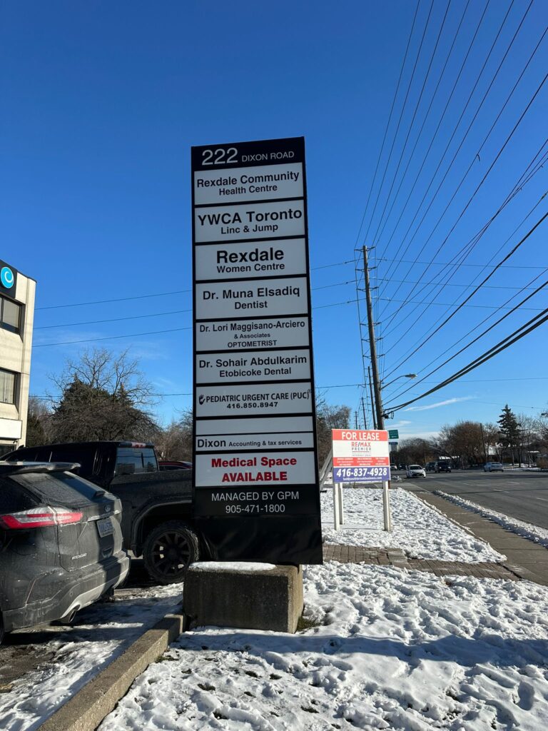 Prime 1,155 sq.ft. Medical/Professional Office Space for Lease at 222 Dixon Rd, Toronto Corner unit in a well-known medical office building in Central Etobicoke.